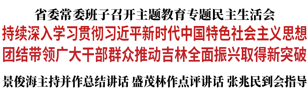 景俊海強調,省委常委班子要充分運用好這次專題民主生活會成果,進一步加強班子自身建設,提高政治站位,強化責任擔當,把黨中央重大決策部署不折不扣落實到位,時刻做到走在前、干在先,立標桿、作表率,團結帶領廣大干部群眾推動吉林全面振興取得新突破。一要堅定不移講政治,始終保持理論上的清醒、政治上的堅定、行動上的自覺,帶頭深入學習習近平新時代中國特色社會主義思想,永葆對習近平總書記的衷心擁護、深切愛戴之情,始終同以習近平同志為核心的黨中央保持高度一致。二要堅定不移強擔當,在增強工作本領、改進工作方法、發揚斗爭精神上持續用力,以“時時放心不下”的責任感、積極擔當作為的精氣神,加快推動吉林全面振興。三要堅定不移踐宗旨,始終同人民站在一起、想在一起、干在一起,深入基層、深入群眾,認真傾聽民意、了解需求,真正把惠民生的事辦實、暖民心的事辦細、順民意的事辦好,不斷增強群眾獲得感、幸福感、安全感。四要堅定不移抓黨建,壓緊壓實“兩個責任”,抓好分管領域、所在市(州)黨風廉政建設,大力培樹“嚴新細實”優良作風,一體推進不敢腐、不能腐、不想腐,推動全面從嚴治黨向縱深發展。五要堅定不移嚴自律,嚴以修身、嚴以用權、嚴以治家,永葆共產黨人廉潔本色,真正做到干干凈凈做事、清清白白做人、堂堂正正做官。