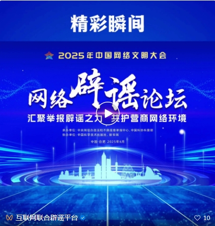 網絡謠言不僅破壞網絡生態健康,還可能對企業發展和社會經濟造成嚴重影響。6月11日,2025年中國網絡文明大會網絡辟謠分論壇在安徽合肥舉行,論壇首次聚焦企業和營商環境,以“匯聚舉報辟謠之力,共護營商網絡環境”為主題,開啟了一場深度“對話”,旨在為企業創造更加公平、透明的營商網絡環境,推動網絡辟謠工作與經濟社會發展的深度融合。