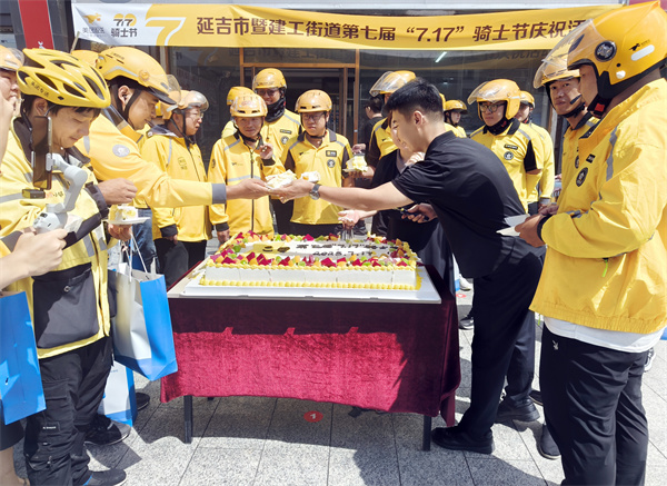 7月17日,延吉市暨建工街道第七屆“7·17騎士節”慶祝活動舉行。延吉市政府、建工街道、“三新”黨組織及延吉急時雨(美團配送)公司等單位的負責人和“最美騎手”等50余人參加活動。