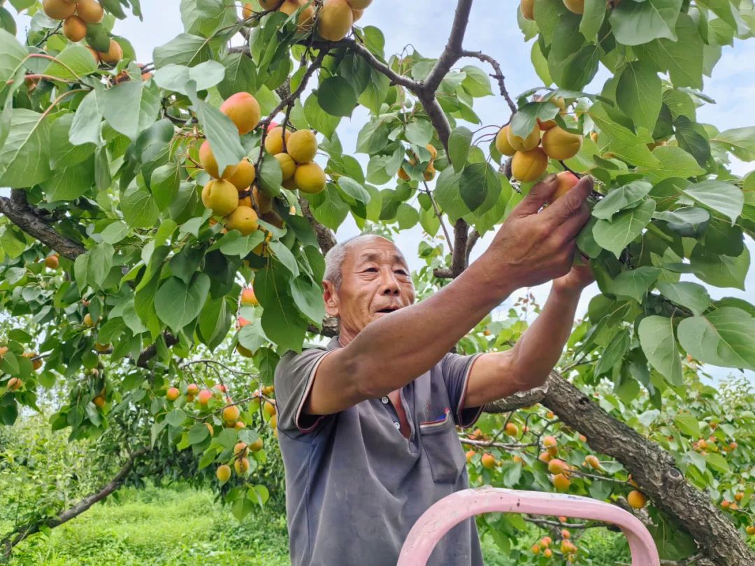“來(lái),嘗嘗這個(gè)!”孫星辰將剛摘下的一顆大杏遞給記者,黃中帶紅的果子披著新鮮的毛茸茸,托在掌心比雞蛋還要大上一圈,指尖輕輕一掐,薄皮就裂開(kāi)一道縫,清甜的味道立刻彌漫開(kāi)來(lái)。咬一口,果肉像蜜漬過(guò)的果凍,潤(rùn)得能吮出汁來(lái),甜里帶著一絲恰到好處的酸,把暑氣都頂走了。“咋樣?這味兒在別處嘗不到吧?”孫星辰的話語(yǔ)中帶著驕傲:“咱這杏基因好,又長(zhǎng)在山上,喝著山泉水,口感特別好,這些年已經(jīng)聲名遠(yuǎn)揚(yáng)了。”