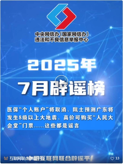 醫(yī)保“個人賬戶”將取消、院士預(yù)測廣東將發(fā)生8級以上大地震、高價可購買“人民大會堂”門票……這些都是謠言