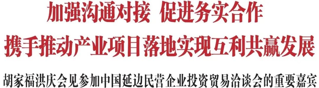 胡家福洪慶會(huì)見(jiàn)參加中國(guó)延邊民營(yíng)企業(yè)投資貿(mào)易洽談會(huì)的重要嘉賓