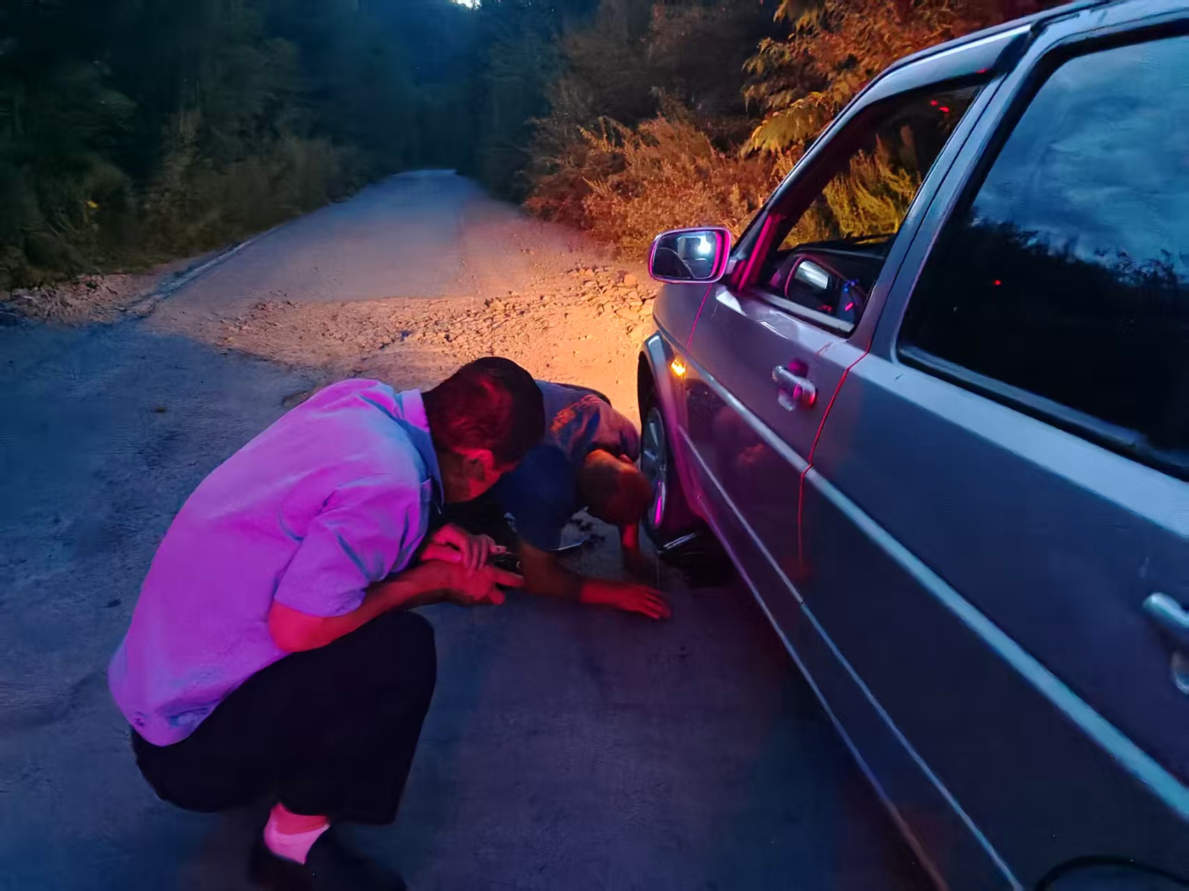 8月25日,暮色漸濃,省公安廳森林公安局汪清森林公安分局交通管理大隊汪清中隊民警在轄區汪塔線路段開展日常巡邏。行駛至虎豹公園區域時,發現一輛小型轎車車身明顯向左傾斜,存在極大安全隱患。“師傅,停車。”民警立即通過警示燈和手勢示意車輛靠邊停車。
