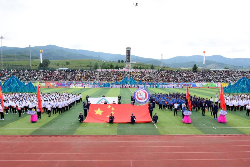 上午8時30分,入場檢閱儀式開始。由和龍市消防救援大隊、州森林消防支隊和龍大隊等20余名消防救援人員組成的儀仗隊,高舉五星紅旗、本屆運動會會旗與會徽,莊嚴步入會場。隨后,裁判員方隊及各縣(市)代表隊身著統一服裝,手持國旗,步伐矯健,精神抖擻,依次通過主席臺,充分展現了新時代延邊體育健兒朝氣蓬勃、奮發進取的精神風貌。