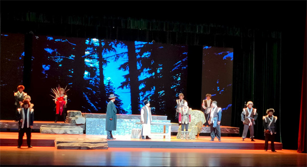 隨著幕布緩緩拉開(kāi),演出正式開(kāi)始。《血色戴營(yíng)》講述的是“九一八”事變東北淪陷后,吉東地區(qū)早期抗日斗爭(zhēng)的一段真實(shí)的歷史。1932年2月,吉林省敦化縣沙河沿鎮(zhèn)東南臺(tái)子首富戴萬(wàn)齡,在年逾六旬之時(shí),毅然決然舍棄幾代人奮斗了半個(gè)多世紀(jì)累積的萬(wàn)貫家財(cái),帶領(lǐng)男女老幼四代57口人、全族200余人舉旗抗日,帶領(lǐng)“戴家軍”先后跟隨中國(guó)國(guó)民救國(guó)軍、綏寧反日同盟軍、東北反日聯(lián)合軍第五軍、東北抗日聯(lián)軍第五軍,英勇頑強(qiáng)地戰(zhàn)斗在白山黑水,最后壯烈犧牲。到抗日戰(zhàn)爭(zhēng)勝利時(shí),戴家投身抗戰(zhàn)共計(jì)犧牲55人。戴家舉家抗日的壯舉,影響與帶動(dòng)越來(lái)越多工農(nóng)大眾投身抗戰(zhàn),在推動(dòng)全民族抗戰(zhàn)形成中發(fā)揮了重要作用。