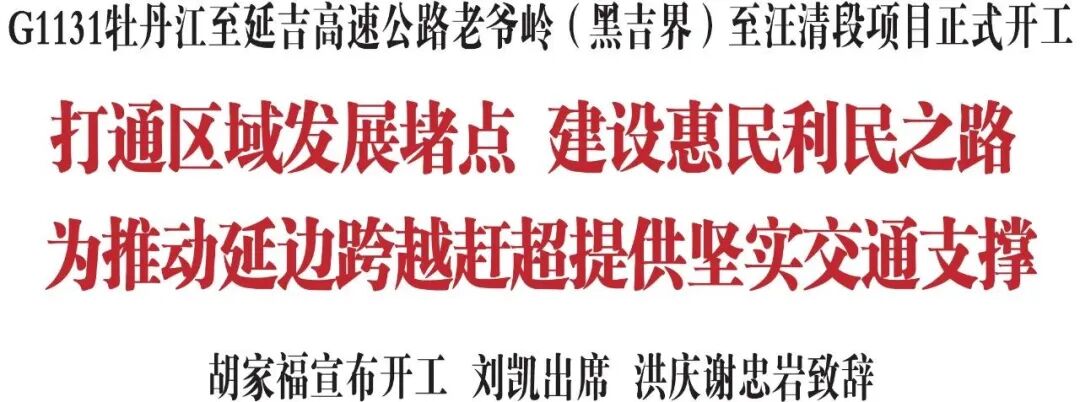 9月8日,G1131牡丹江至延吉高速公路老爺嶺(黑吉界)至汪清段項目正式開工。省委常委、州委書記胡家福出席開工活動并宣布開工。副省長劉凱出席開工活動。州委副書記、州長洪慶,吉林省高速公路集團有限公司黨委書記、董事長謝忠巖出席開工活動并致辭。