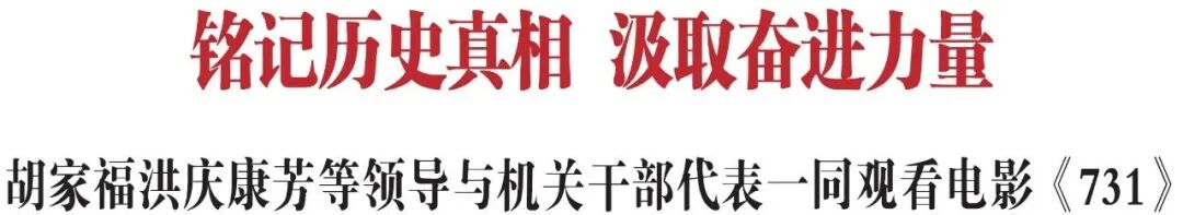 胡家福洪慶康芳等領導與機關干部代表一同觀看電影《731》