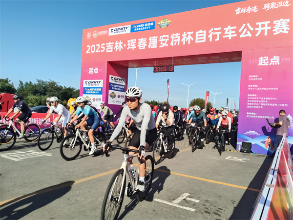 9月21日,“吉林騎跡 騎聚沿邊”2025吉林·琿春自行車賽在哇斯托克歡樂島開賽,來自東北三省的近300名自行車愛好者展開了激烈角逐。