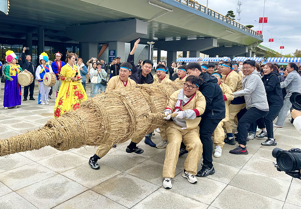 “人民高鐵人民剪彩”,一場民族風情濃郁的文化盛宴成為高鐵開通最特別的慶祝儀式?;顒蝇F場人氣鼎盛,“禮贊豐饒,守望傳承”非遺展演精彩上演:朝鮮族鶴舞《長白鶴之鄉》舒展靈動,歌曲《延邊之戀》《阿里郎》悠揚婉轉,民樂合奏《茉莉花》《桔梗謠》韻味悠長,舞蹈《喜悅》熱情洋溢,生動彰顯了民族文化的獨特魅力與非遺傳承的深厚底蘊?!皥F結之繩,豐收之龍”朝鮮族拔草龍活動中,當地群眾與游客組成的隊伍在鑼鼓聲中奮勇角逐,在歡樂競技中傳遞著偉大團結精神。非遺體驗區內,朝鮮族美食制作、樂器互動、傳統技藝展示、文創產品展銷等沉浸式項目,讓游客近距離感受延邊民俗的鮮活生命力。