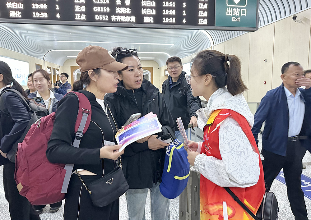 當日11時48分,滿載乘客的沈白高鐵G8167次首發列車準時抵達長白山站。列車車門開啟后,州文廣旅局局長劉冬梅帶領工作人員早已等候在站臺,為下車乘客送上延邊文旅暢游聯票與鮮花等“見面禮”,熱情邀請大家深度體驗延邊風情?!案哞F開通太方便了,這下能好好逛逛延邊的美景、嘗嘗特色美食了!”來自沈陽的游客全麗難掩興奮之情。