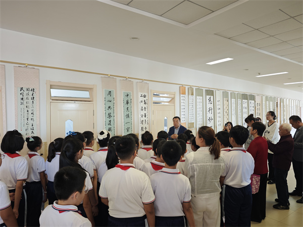 9月26日,由延吉市進學街道文明社區攜手延邊國學研究會、延吉市北山小學共同舉辦的民族團結進步宣傳書法展進校園活動,在延吉市北山小學溫暖啟幕。