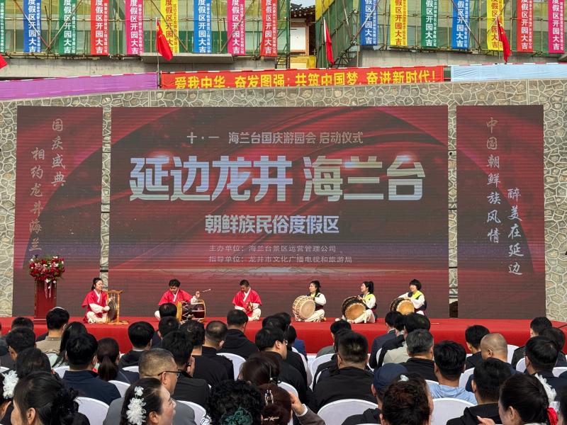 10月1日,龍井市海蘭臺朝鮮族民俗度假區內紅旗招展、歌舞歡騰,由龍井市文廣旅局指導、海蘭臺景區運營管理公司主辦的“盛世華誕·海蘭臺為祖國獻禮”海蘭臺國慶游園會啟動儀式在此舉行。副州長尹朝暉出席儀式并致辭。