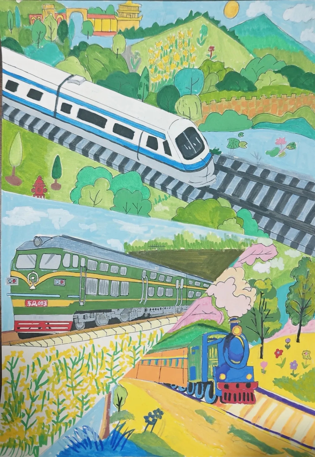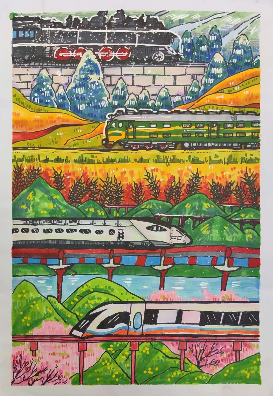 我是在邊陲小城——東寧的姥姥家長大的,回佳木斯的爺爺家就要汽車轉(zhuǎn)火車。小時候媽媽帶我坐火車的記憶猶如潺潺的溪流在我的心間蜿蜒伸長。綠皮火車“哐當(dāng)哐當(dāng)”,是我童年旅程的獨特配樂。車窗外,東北大地像打翻的顏料盤。春日,剛抽芽的柳枝在風(fēng)里蕩秋千,和火車玩著捉迷藏;盛夏,大片金黃麥浪涌起,似給大地鋪了絨毯,火車駛過,麥浪分開又合攏,像在給鋼軌行注目禮;深秋,五花山打翻調(diào)色盤,紅的楓、黃的楊、褐的柞,在車窗上流淌成畫;寒冬,銀裝素裹的世界里,鋼軌是條黑色的琴弦,車輪與鋼軌撞擊,似在彈奏冰天雪地的歌謠。