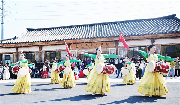 10月2日,民俗園內(nèi)人潮涌動、熱鬧非凡,一場場極具民族特色的傳統(tǒng)表演接連上演,為游客精心打造獨具特色的視聽盛宴。農(nóng)樂長短巡游隊伍踏著明快而富有節(jié)奏感的步伐,穿梭于園區(qū)的各個角落,他們手中的樂器奏響歡快的旋律,將豐收的喜悅傳遞給每一位駐足觀看的游客。走進(jìn)樂器體驗館,伽倻琴演奏聲如潺潺流水般悠揚婉轉(zhuǎn),讓游客沉醉其中。廣場上,舞蹈演員身著傳統(tǒng)服飾,以優(yōu)雅姿態(tài)與精湛技藝,將民族舞蹈的獨特魅力展現(xiàn)得淋漓盡致。精彩表演深深打動了游客,大家被舞蹈演員的熱情感染,一同載歌載舞,氣氛歡樂。經(jīng)典劇目《春香傳》的精彩呈現(xiàn),讓觀眾領(lǐng)略到傳統(tǒng)戲曲的獨特魅力。投壺等民俗游戲趣味賽人氣高漲,游客們踴躍參與,在歡聲笑語中感受著傳統(tǒng)游戲的樂趣。不僅如此,民俗園還打造了《印象延吉》傳統(tǒng)歌舞秀,生動展現(xiàn)延吉的歷史文化與民俗風(fēng)情,讓游客在欣賞精彩表演的同時,深入了解這座城市的魅力。