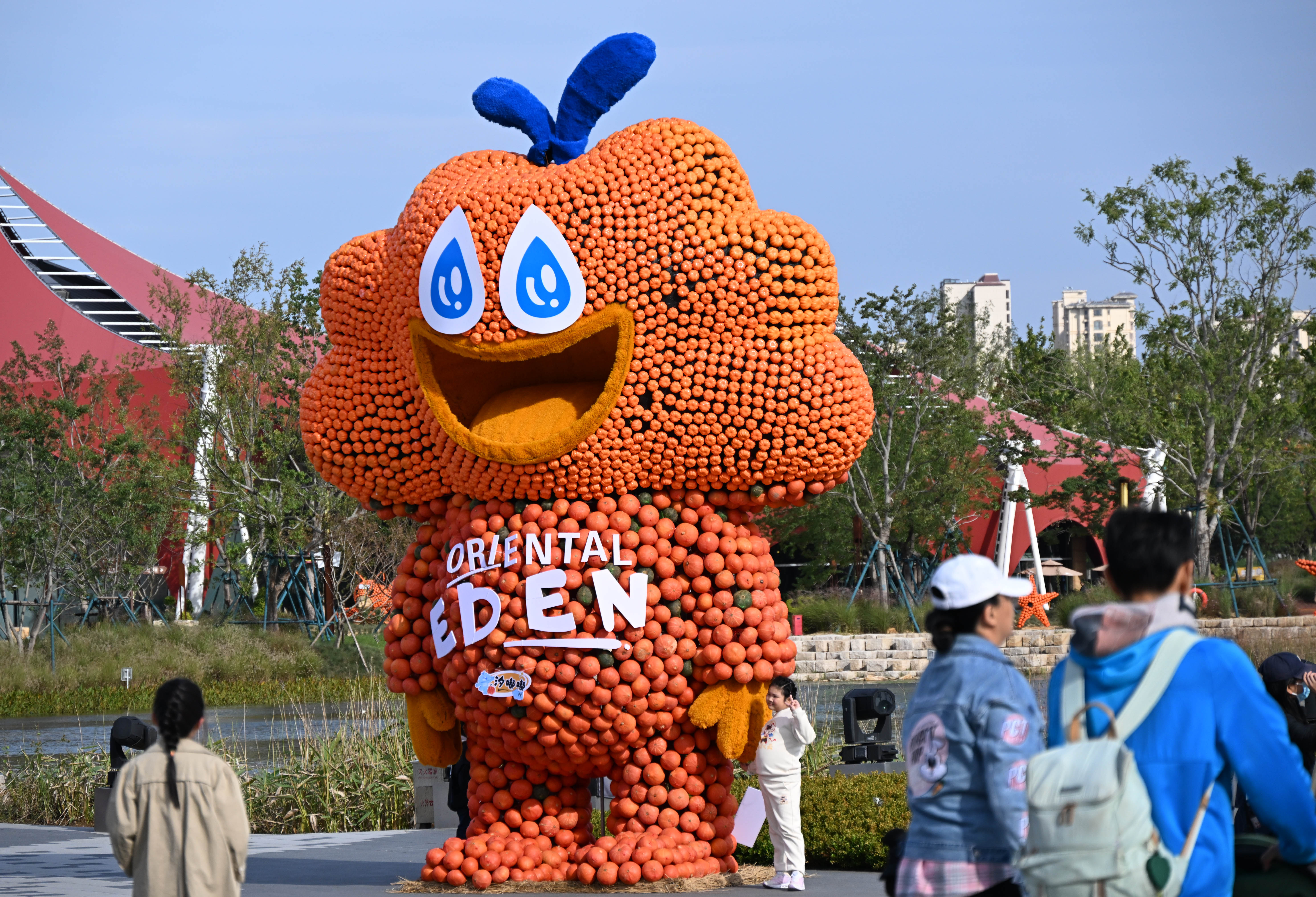 近日,青島東方伊甸園舉行“南瓜藝術王國”主題展,景區內用不同品種和色澤的南瓜搭建的卡通造型憨態可掬,吸引眾多游客前來賞玩。