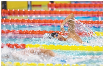 山東隊選手張展碩在十五運會游泳項目男子1500米自由泳決賽中。