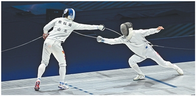 運動員在十五運會擊劍項目男子重劍個人決賽中。