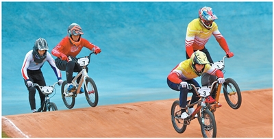 運動員在十五運會競速小輪車比賽中。
