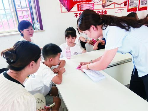 銀行業(yè)務(wù)員教兒童辨別人民幣真?zhèn)?/p>